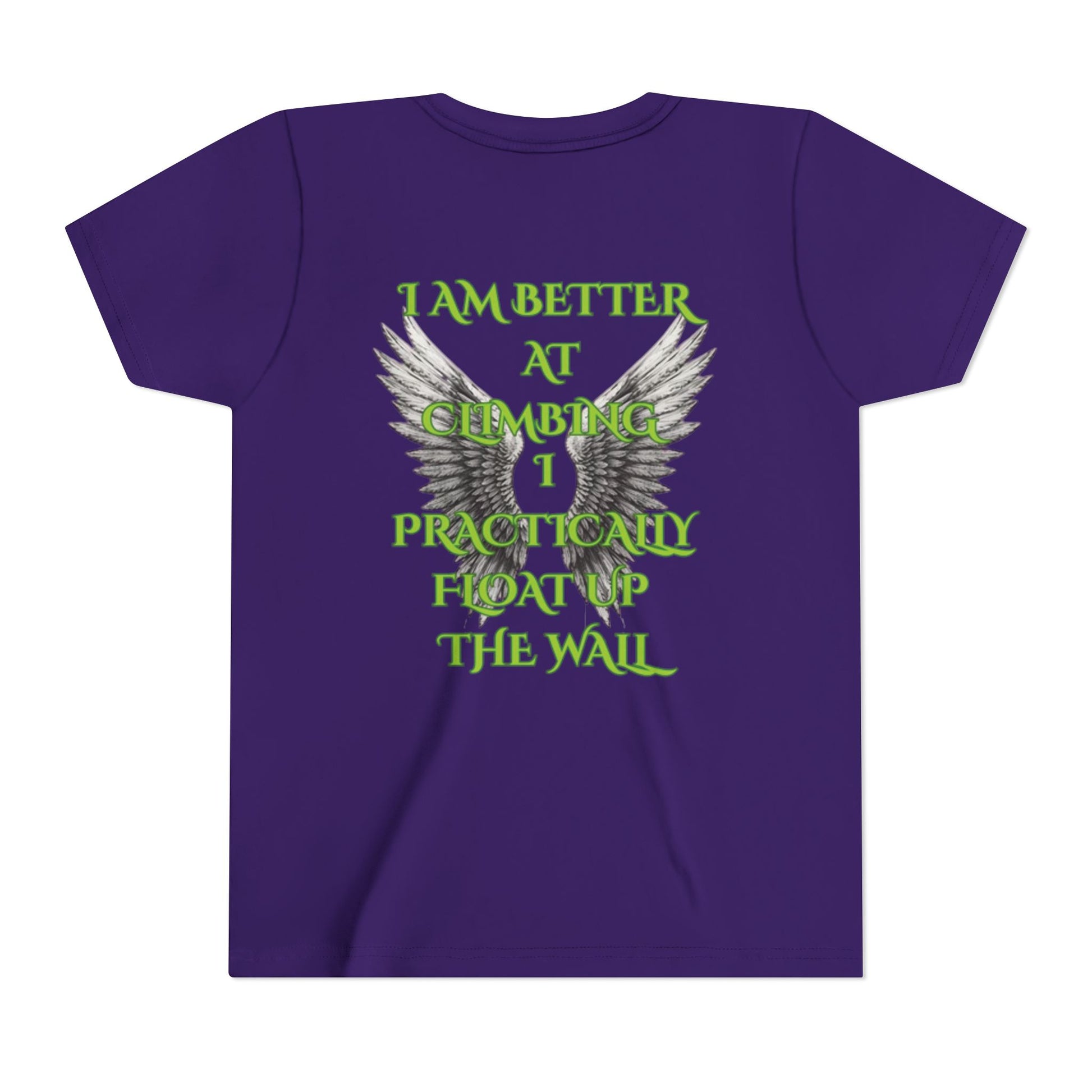 This youth short sleeve tee is perfect for competition climbers with the bold statement 'We are better than you.' The tee gives off a confident and competitive vibe, making it ideal for climbers who want to stand out in a crowd. It can be worn during climbing events, competitions, or casual outings with fellow climbers.